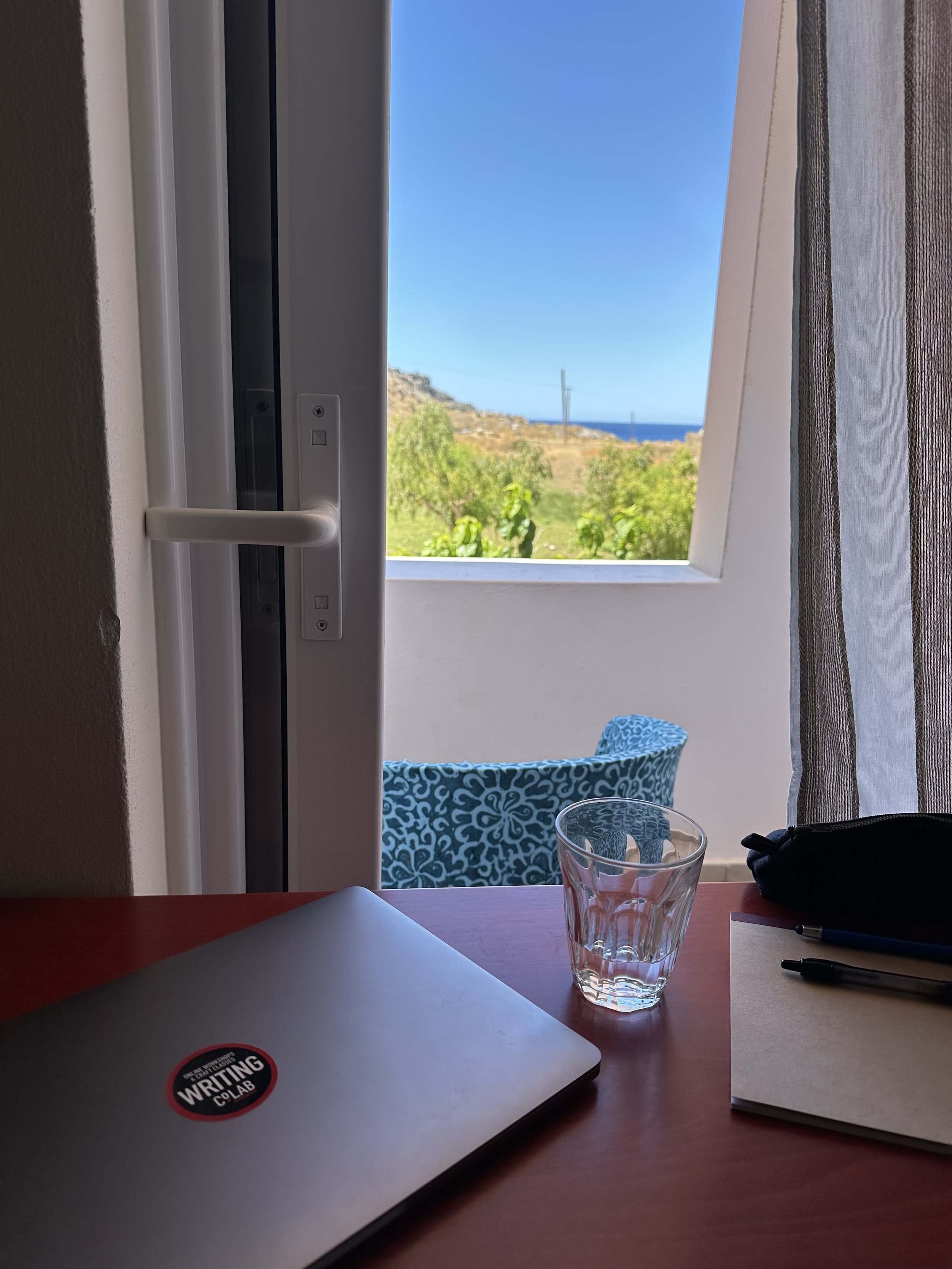 Peitho’s Gift came during a time when my writing routine had stagnated and made it bloom again. There’s a marked difference between the droll, familiar work I produced while restricted by my everyday stresses, and the unencumbered, sensorial writing that I accomplished while in the company of writers from around the world, sharing meals and beach towels and stories and advice while taking in the Greek seaside and enjoying the immense hospitality of its locals. Brian and Trish were incredible, deeply supportive hosts who made sure that we had everything we needed to return to our writing refreshed and renewed. – author Monique Laban